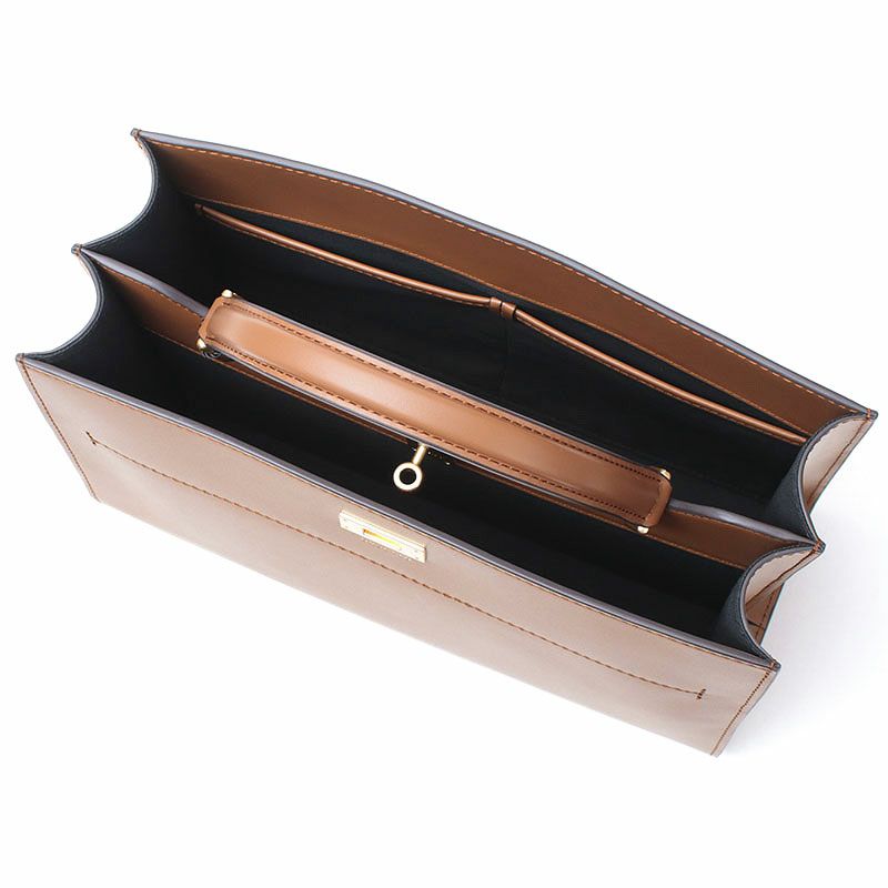 クラシックな四角いBOX型トートはイタリア語で「箱」という意味のSCATOLA。カッチリして本革の風合いとうまくマッチしています。背筋が伸びる素敵なバッグ。