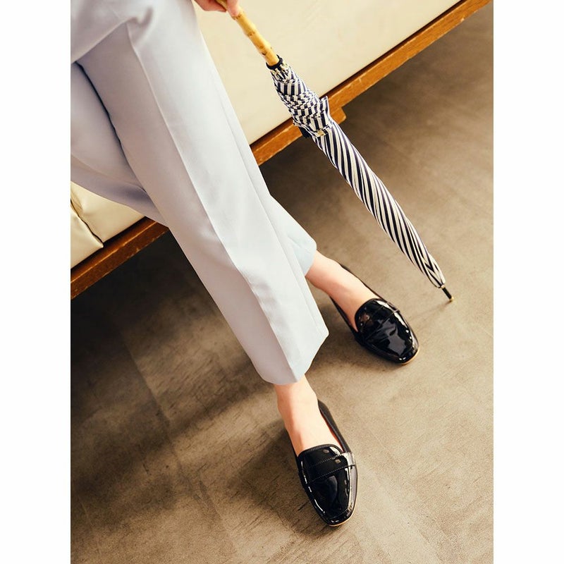 すっきりとしたディテールに、エナメルの光沢が雰囲気たっぷり。ソフトなアッパーに滑りにくいアウトソールを組み合わせた軽い履き心地も◎。