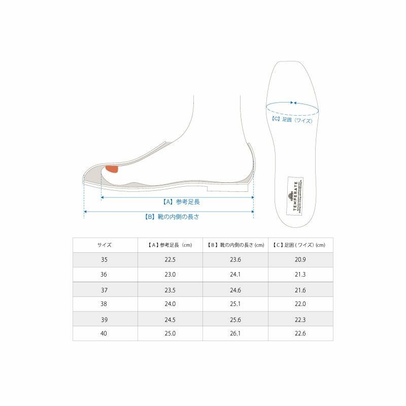 25.0cm → TEMPERATEサイズ:40