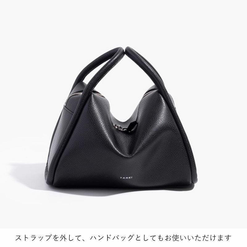 ハンドバッグとして持ったときはコンパクトな印象ながら、ショルダーストラップを付けることで、容量感のあるボストン型に。見た目と実用性にギャップを備えた構造が魅力です。