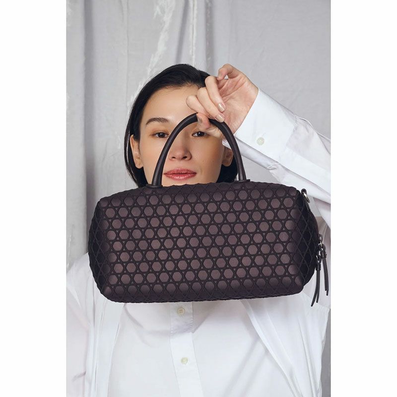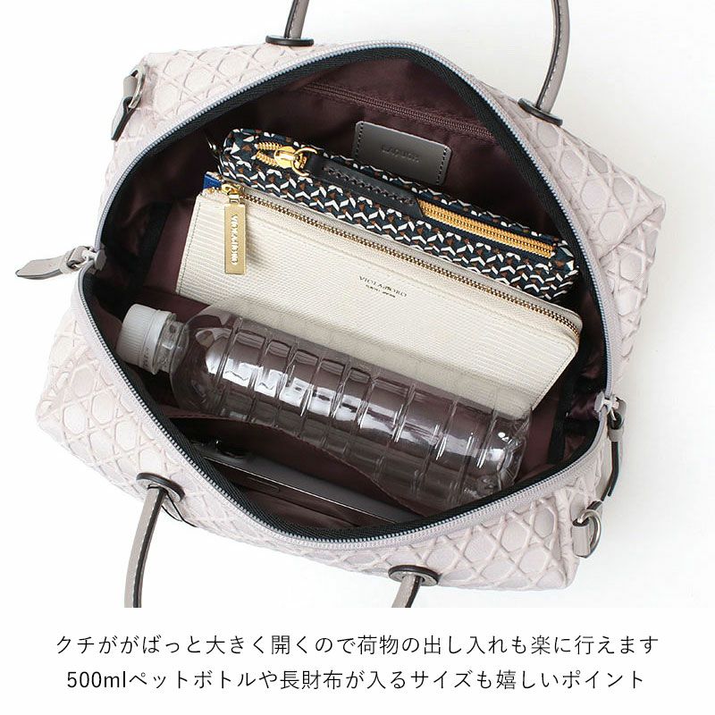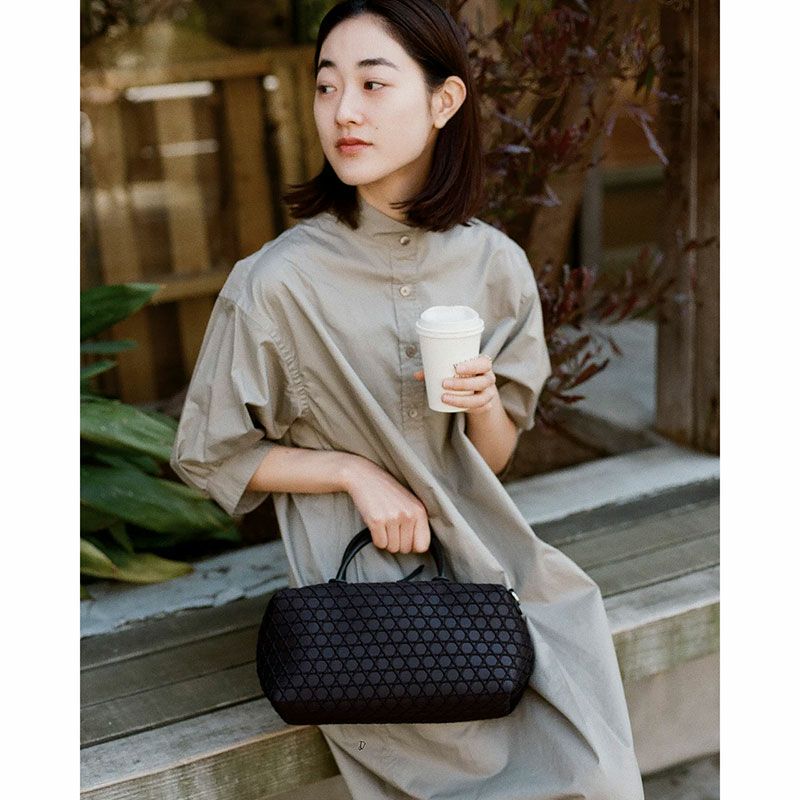 500mlのボトルも収納可能な実用性に加え、撥水加工を施したファブリックが雨の日の外出も美しくサポート。