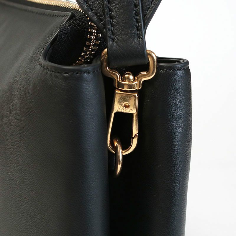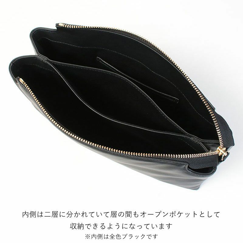 2層に分かれた収納はデザインにもなって使い勝手も上げてくれます。 センターはオープンポケットにもなっているので全部で3か所の収納場所がある事に。 長財布が入って、リップやイヤフォンなど小さなものも迷子にならずすぐに見つかります。